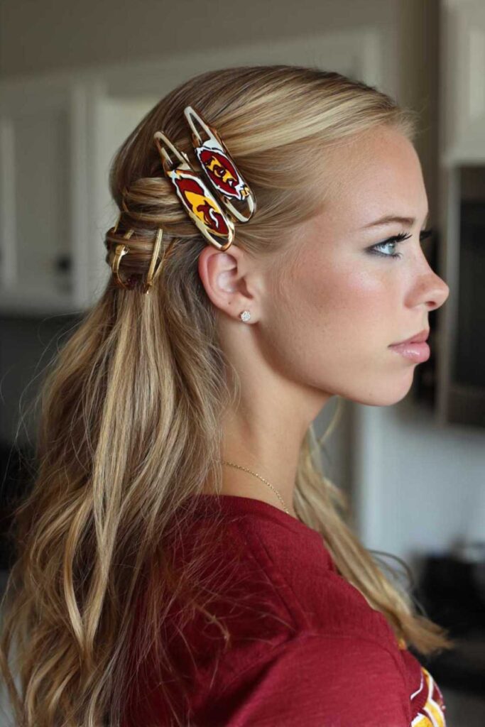 Don’t underestimate the power of a good hair clip! Strategically place clips that have team logos or colors. This is a subtle yet effective way to show your support. You can mix and match different clip styles for a unique look. Try placing them near your temples or securing a side sweep with a bolder clip.