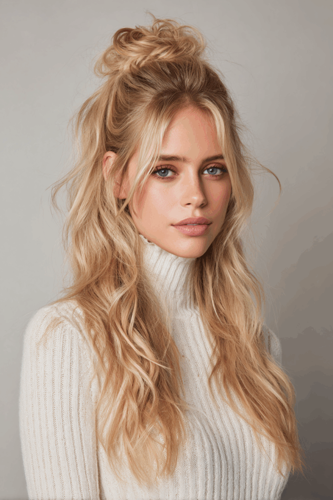 This is the ultimate cozy style. It’s all about comfort and effortless chic. Leaving out a few strands around your face adds softness. It’s my favorite for a relaxed vibe. Secure it with bobby pins. This gives extra hold if you need it. It feels so relaxed.