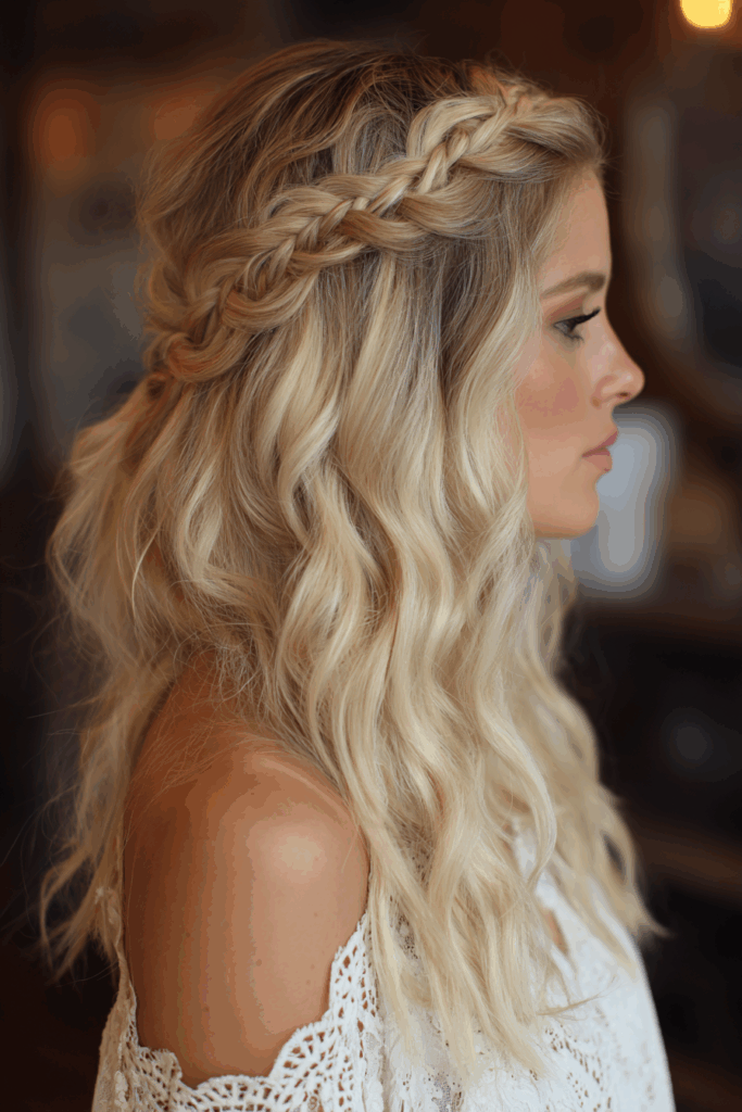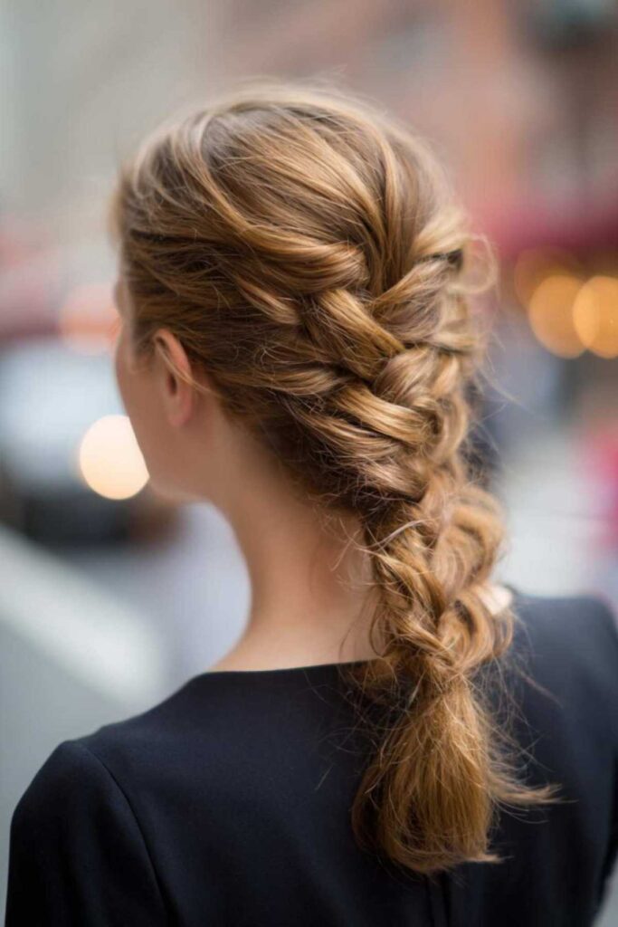 For fall events, this is my favorite. It feels so romantic and polished. The braid frames your face beautifully. It works really well with layered hair. Gently pull on the sides of the braid. This makes it look fuller and more voluminous. It’s such a pretty look.