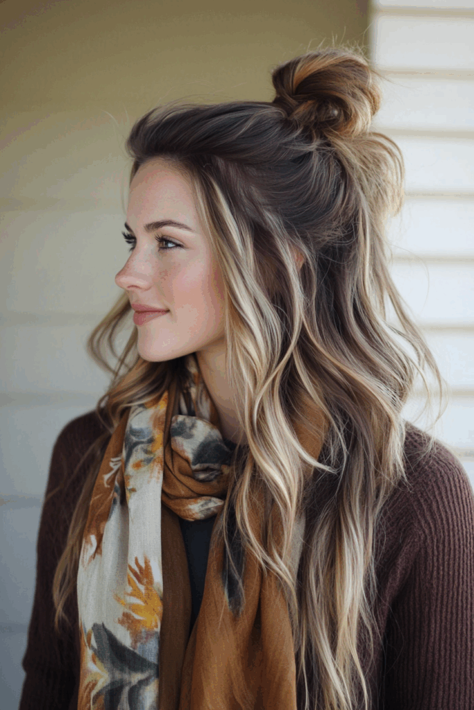 Soft, natural waves are always in. Adding a scarf takes them to the next level. It’s perfect for elevating casual outfits. I love wrapping a silk scarf around the base of my ponytail or bun. It adds just the right touch of sophistication. It feels so put-together.