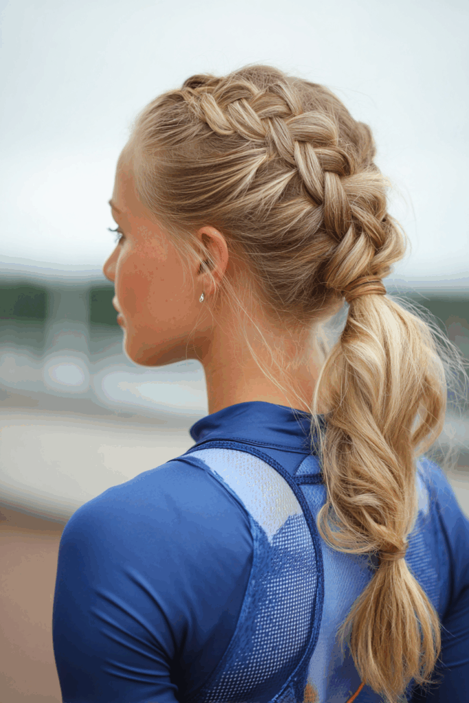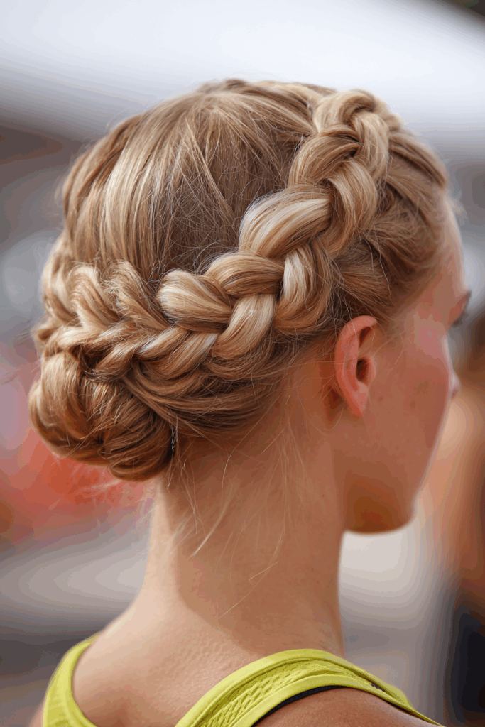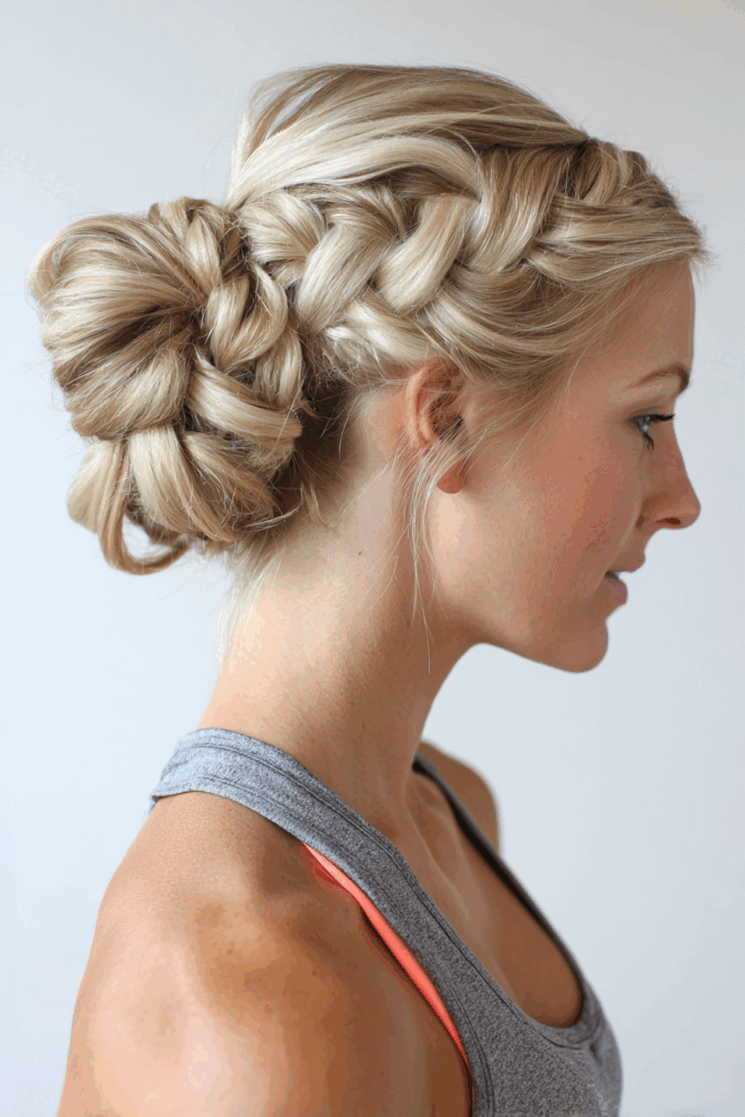 A braided crown is both elegant and practical. It keeps hair off your face and neck nicely. This style stays put through all your movements. It has a sophisticated yet sporty appeal. Secure the braid firmly with pins. This prevents any slippage during play.