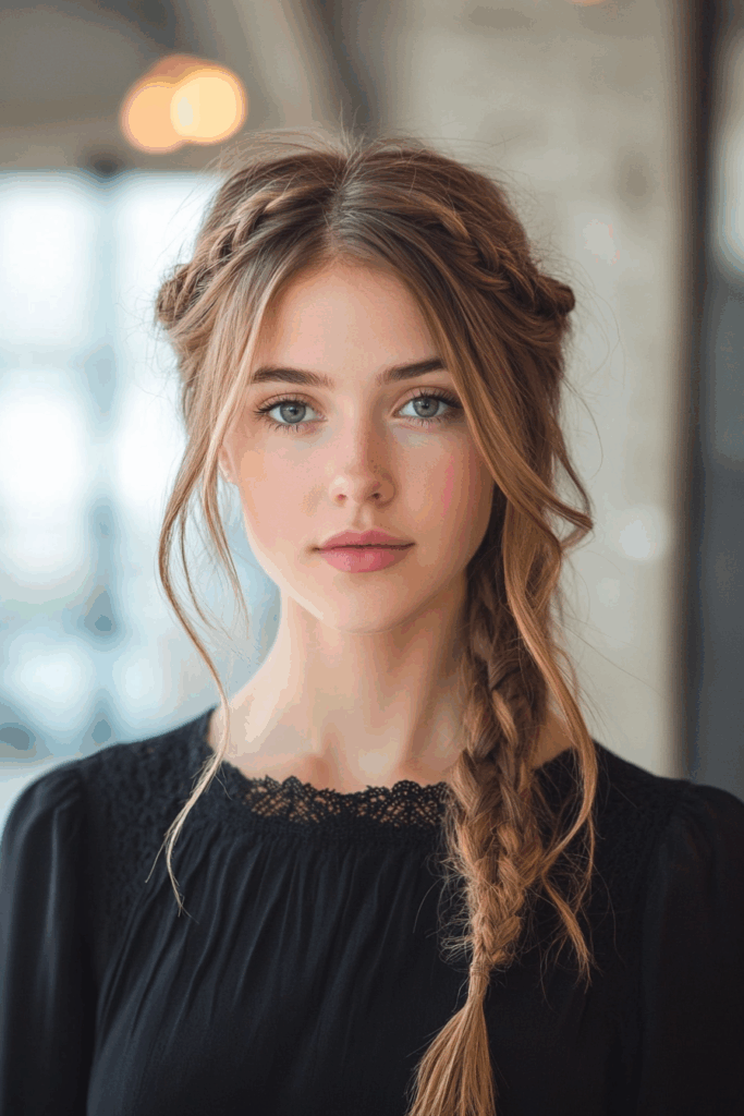 Start with a ponytail, then braid it! This style offers a dual benefit. It keeps hair off your neck. It also adds texture and style to your look. It’s super easy to execute. The result is always chic. For a softer effect, leave a few face-framing pieces out. They can gently frame your face. This adds a touch of softness.