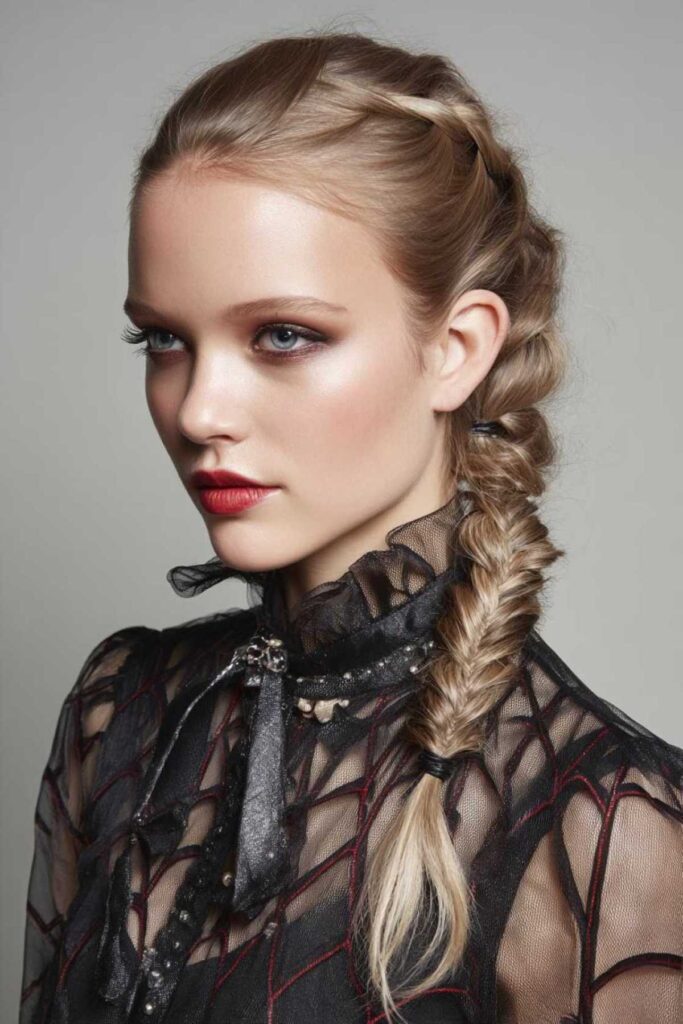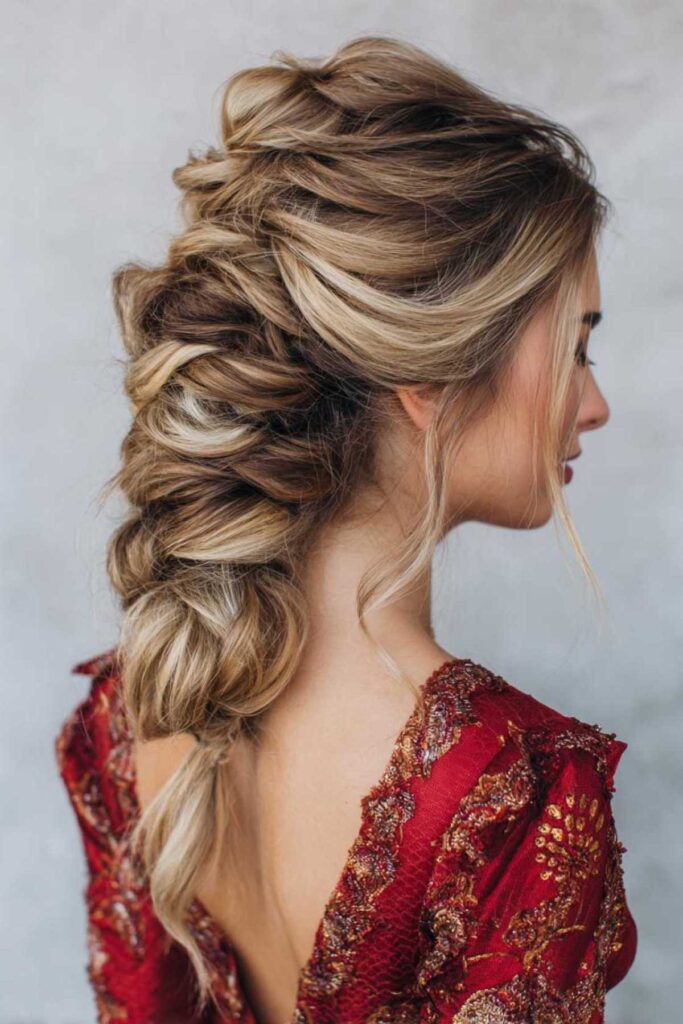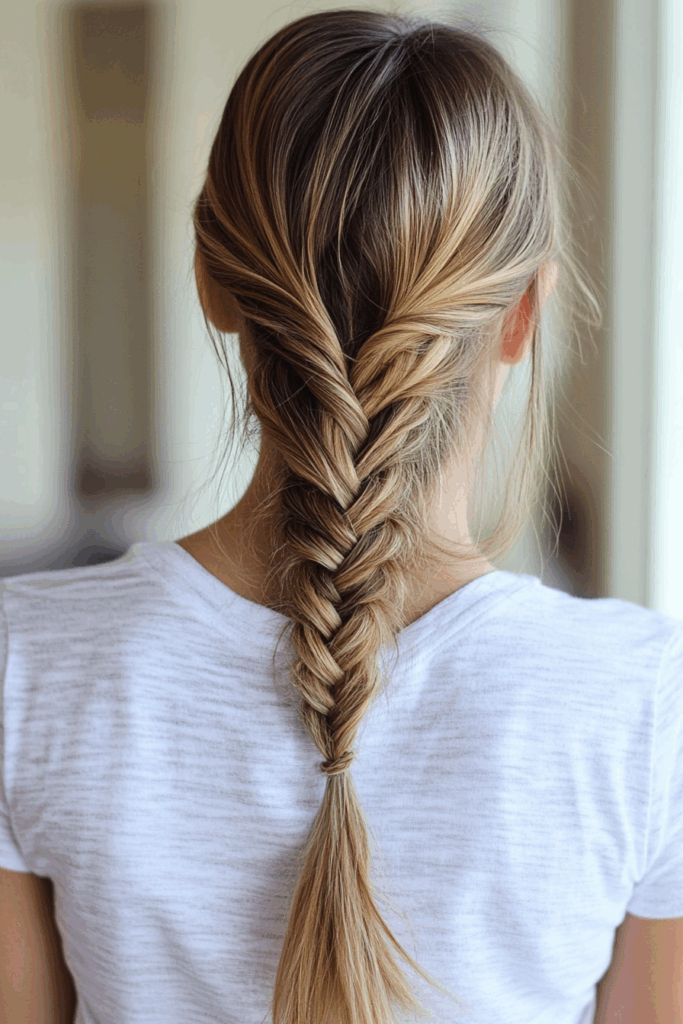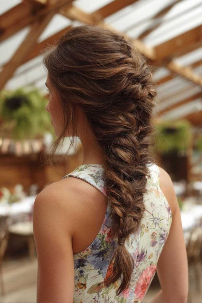 The fishtail braid looks intricate. It’s made by weaving two strands of hair back and forth. This braid is a stylish way to manage your hair in the heat. It has a lovely bohemian and relaxed feel. It’s perfect for beach days or casual outings. After securing it, try loosening the braid slightly. This gives it a softer, more lived-in appearance.