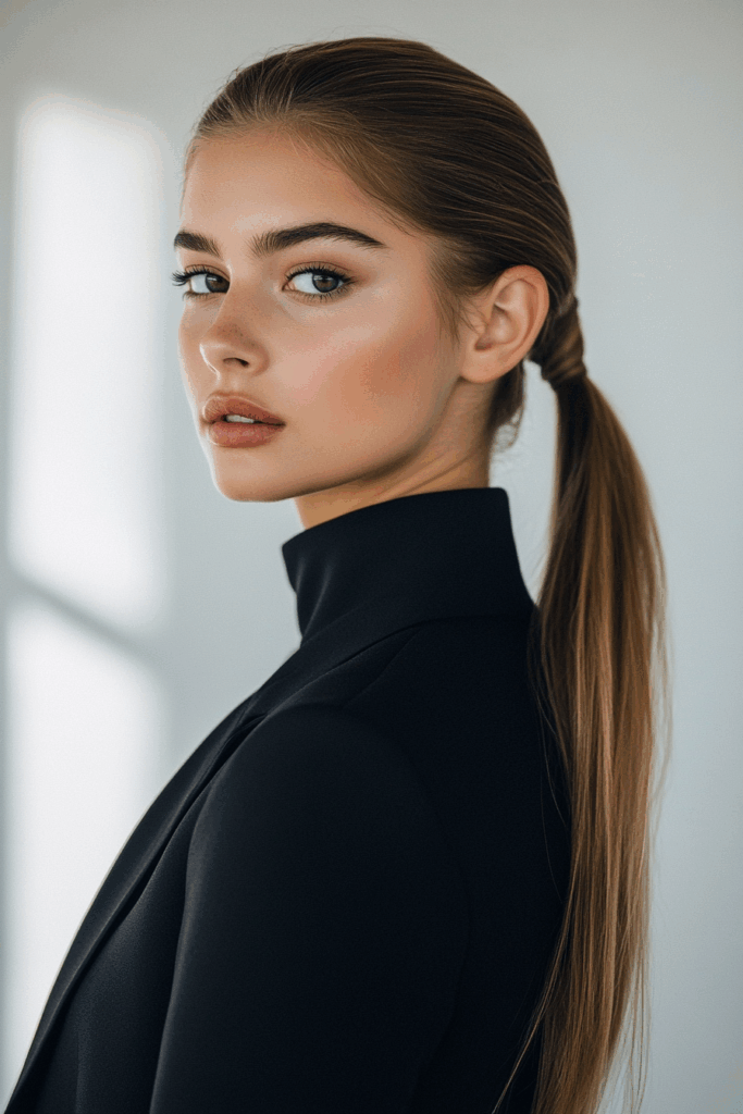 Want a ponytail with a twist? The bubble ponytail is it! You divide your ponytail into sections using elastics. This creates a cute “bubble” effect. It’s a stylish alternative to a regular ponytail. It keeps your hair off your neck too. This style feels playful and very trendy. For a cleaner finish, use hair ties that match your hair color. It looks so polished.