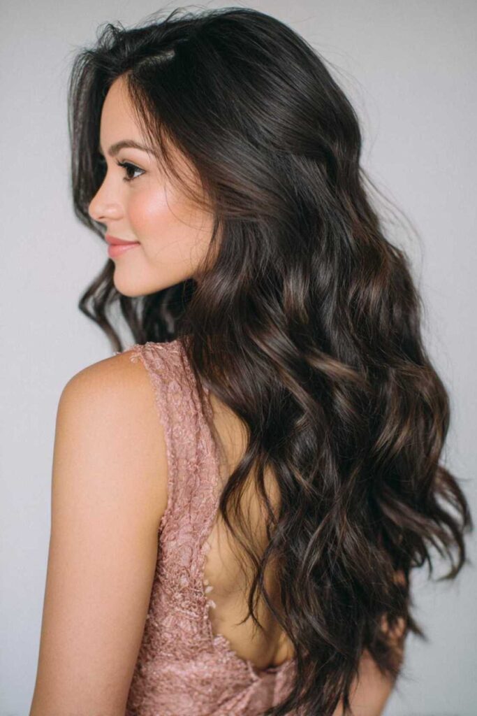 This style offers a perfect balance. The top section of your hair is twisted and secured. The rest is left down. It keeps hair out of your face. Yet, you still get to wear some hair down. It has a relaxed and breezy vibe. It feels very ‘of the moment’. Add a few subtle waves to the loose hair. This gives it extra texture and movement.