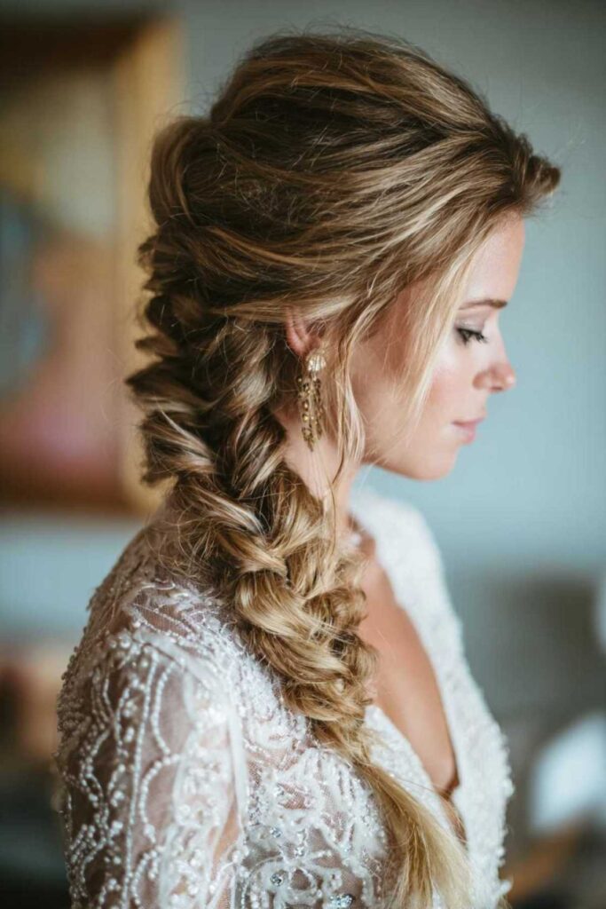 A fishtail braid adds a boho touch. It looks intricate and beautiful. This braid has a unique texture. It’s perfect for a softer look. To make the braid stand out, gently pull apart the sections. This creates a fuller, more relaxed appearance.