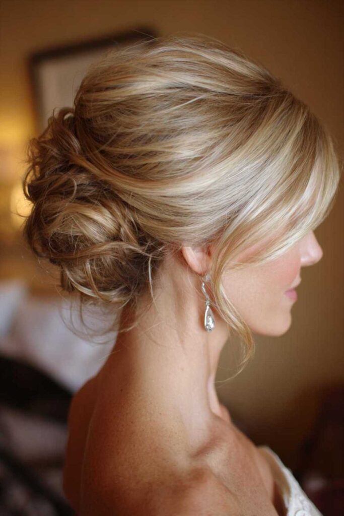This updo is a dream. It’s universally flattering. Soft pieces framing the face add romance. It’s a beautiful choice for any event. To ensure it stays put during energetic dancing, use plenty of bobby pins. Crisscross them for extra security. A strong-hold hairspray is your friend here.