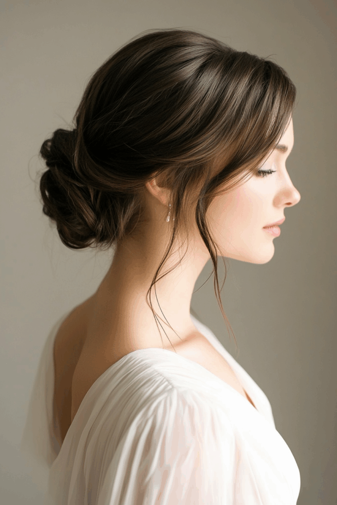 This bun is soft and a bit messy. It’s perfect for a relaxed wedding. It also suits a whimsical party. You can dress it up easily. Try adding accessories. For an undone look, gently pull pieces. It still looks polished!