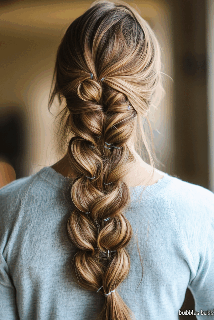 This braid technique creates soft loops. It gives a more ethereal appearance. It’s whimsical and dreamy for dress-up. Gently tug on each loop for a fuller effect. This adds lovely volume.