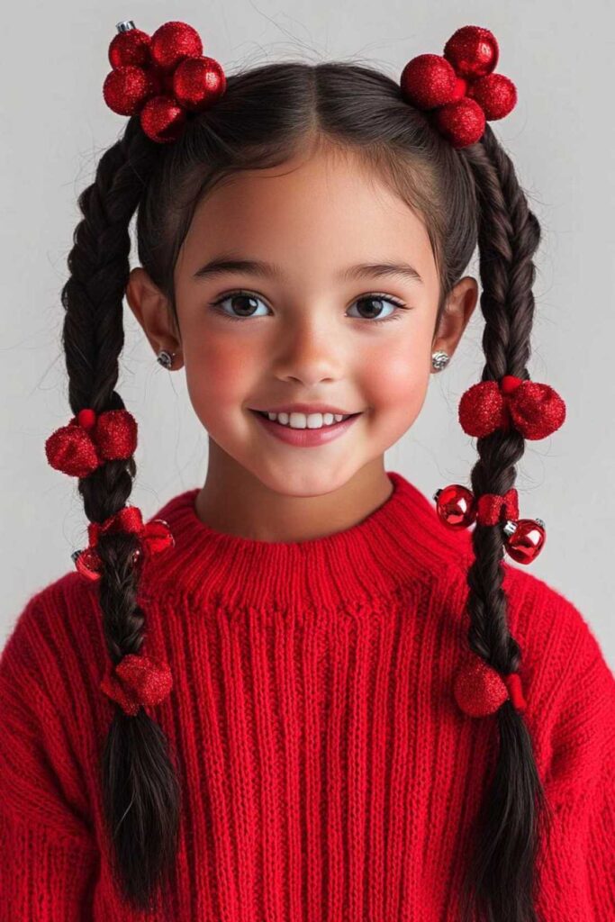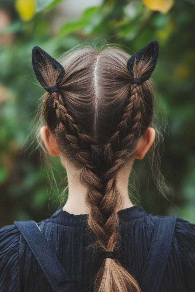This style mixes ease with beauty. It keeps hair away from the face. It’s versatile for active play and parties. Add a sparkle hairspray to the braided section. It catches the light so beautifully.