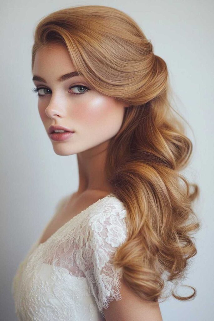 Sweep all your hair to one side. Add soft waves or curls. It looks so chic and stylish. This is great for wedding guests. It complements sophisticated party outfits. Use a light-hold hairspray. It keeps the style in place all night.