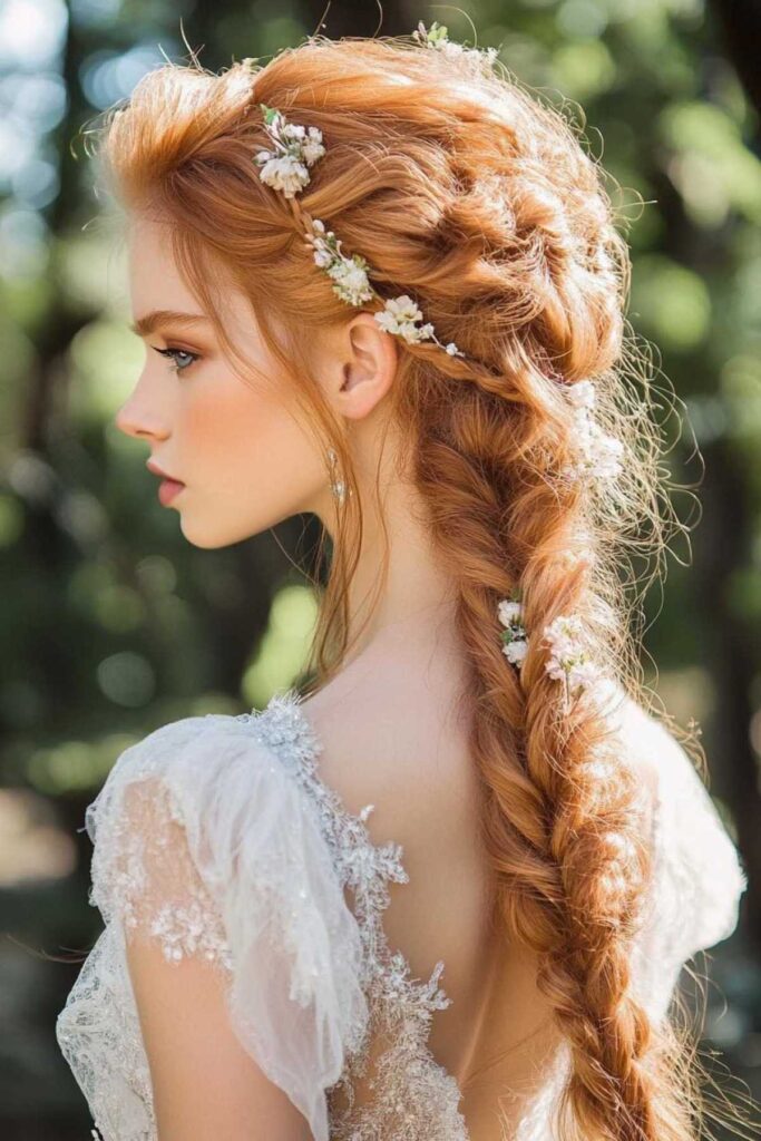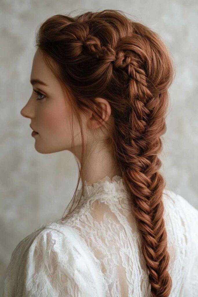 Sweep a beautiful braid to one side. This emphasizes the hair’s length and flow. It’s classic and chic for any occasion. Gently pull apart the braid for a softer look. This gives it a more ethereal feel.