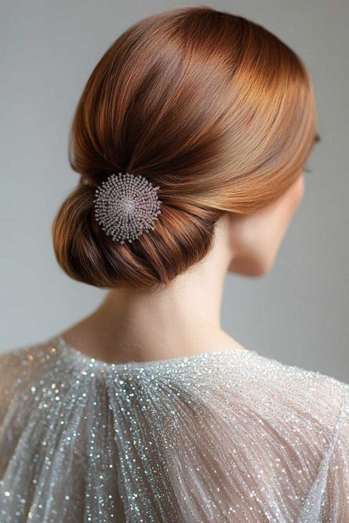Forget the plain bun. This one has flair. Add a braided crown around it. Or try a sparkling jeweled accessory. It’s ideal for bridesmaids. It works for elegant evening events too. For extra volume, use a donut maker. A sock bun works wonders.