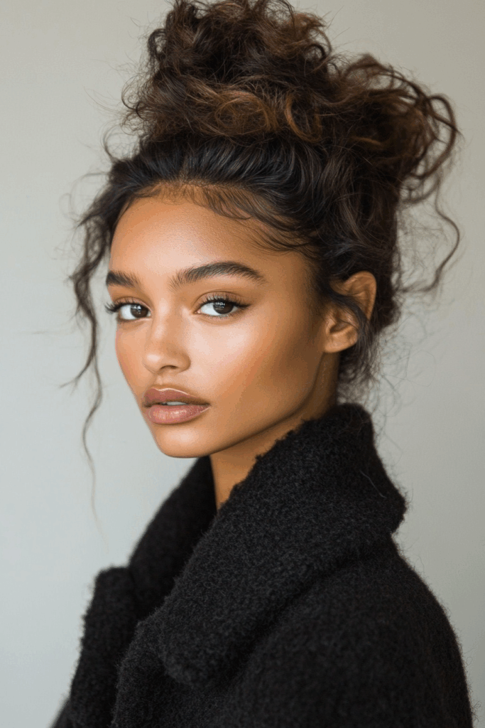 The given hairstyle is complemented easily by the minimalist clothes, i.e., consider white tops, jewelry in silver and slightly applied makeup. It is that non-assertive luxury all are still talking about. I have attempted something of the same appearance last December and the self-confidence that came with it was a reality. When you have naturally dark hair, use an ultra-gloss or a glaze to add more of a dramatic effect to the dark color; it will style your curls to look like silk.